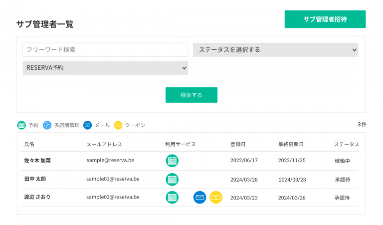 サークルイベントの支援業務は、大学職員だけでなく、学内の関係部署や複数担当者で分担するケースが少なくありません。しかし、管理情報を一人だけが保有している状態では、問い合わせ対応や当日準備が属人化しやすく、急な不在時にも運営が滞りやすくなります。このような課題には、サブ管理者設定機能を活用することで、複数担当者が必要な範囲で管理画面を確認しやすくなり、受付対応を分散できます。担当者ごとに確認業務や設定変更の範囲を整理しながら運用すれば、学内での予約管理体制を整えやすくなります。サークルイベントの予約システムは、申込を受け付けるだけではなく、大学職員の業務分担を明確化し、継続しやすい運営体制を支える仕組みとしても有効です。