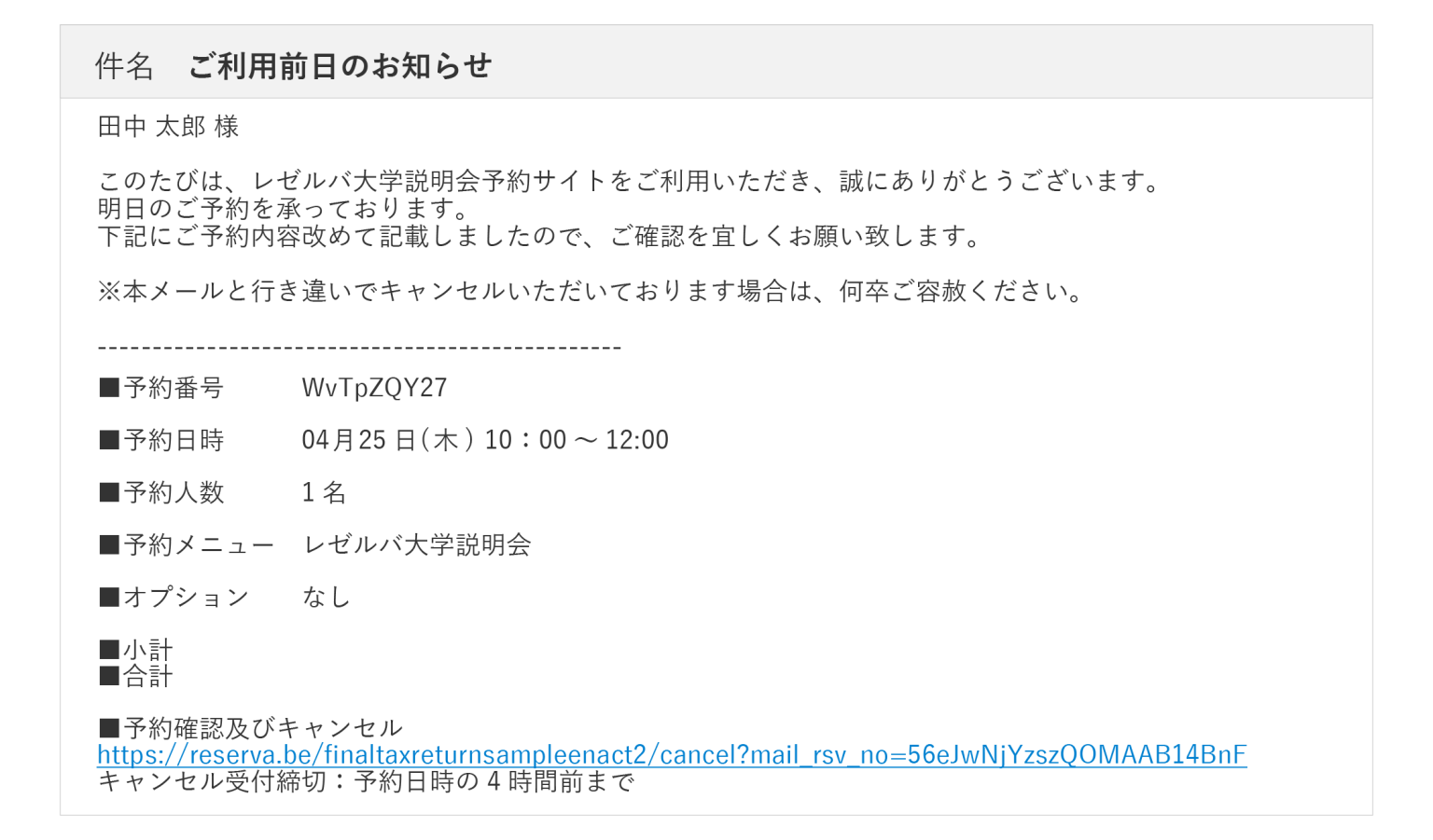 サークルイベントでは、開催日時、集合場所、持ち物、注意事項などを事前に周知する必要がありますが、個別メールを手作業で送る方法では、送信漏れや内容のばらつきが起こりやすくなります。とくに複数イベントを同時に運営している大学職員にとっては、前日の確認連絡まで含めて管理することが大きな負担になります。こうした場面では、予約リマインドメール機能を活用することで、開催前の再確認通知を自動化しやすくなり、無断欠席や案内漏れの抑制につながります。さらに、通知メール機能を活用すれば、申込完了時や変更時の情報伝達も整理しやすくなります。サークルイベントの予約管理では、連絡の自動化によって受付業務だけでなく、当日運営の精度向上にもつなげることができます。