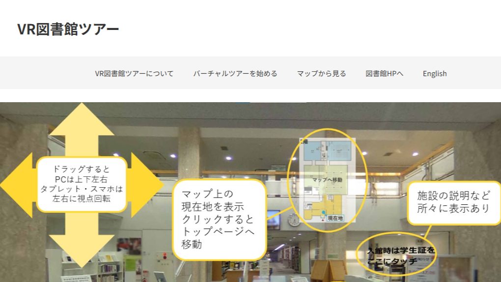 参考サイト:島根大学附属図書館「VR図書館ツアーについて