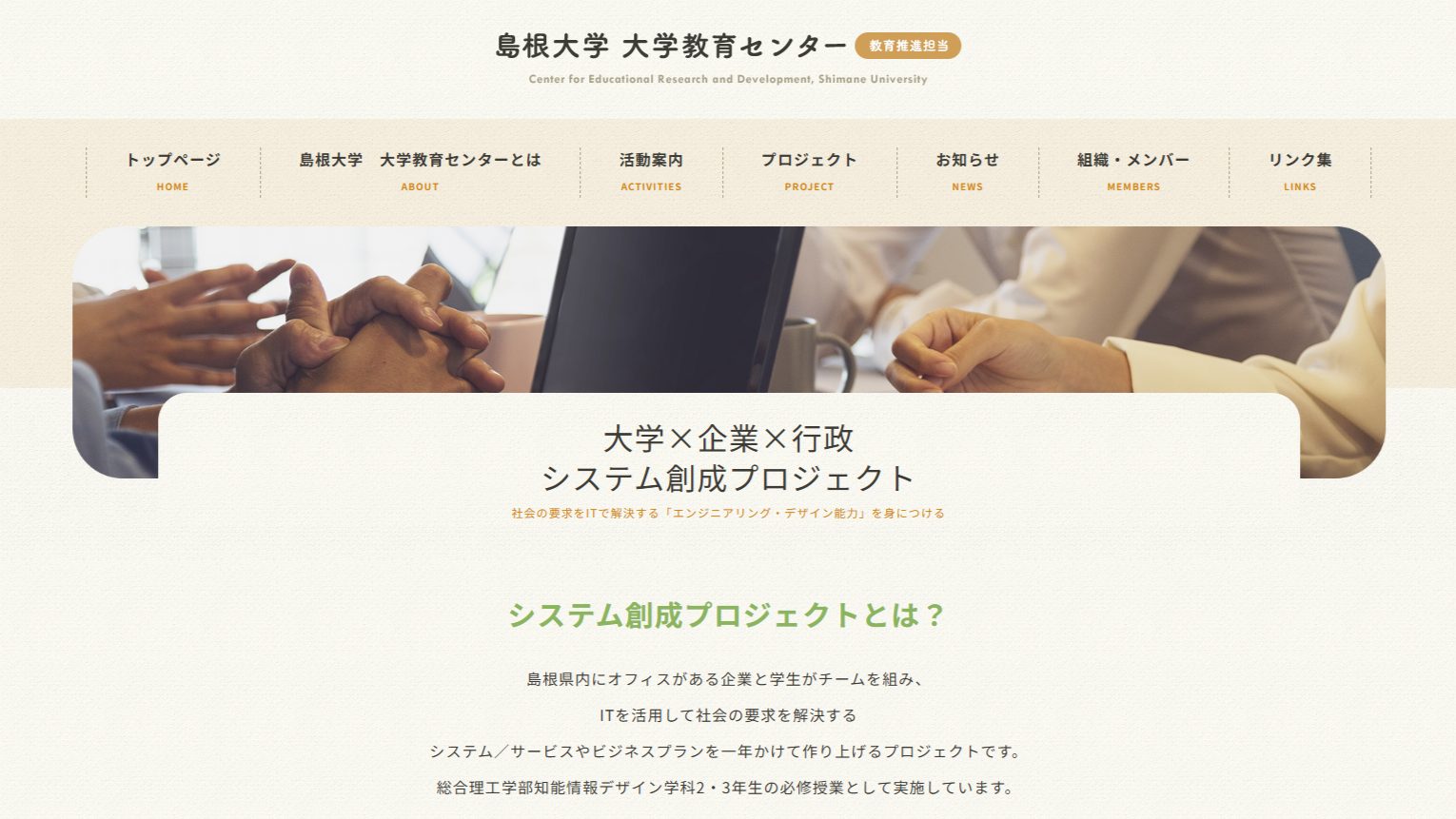 2016年より、総合理工学部知能情報デザイン学科では、2・3年生の必修科目として「システム創成プロジェクト」が開講されています。同プロジェクトは、島根大学、島根県・松江市、IT企業が連携して同学の学生を指導することで、県内IT産業の持続的な成長と、高度IT人材の育成および県内就職促進を目的としています。
